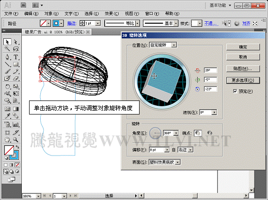 (9)选择瓶身路径,执行"效果"→"应用绕转"命令。