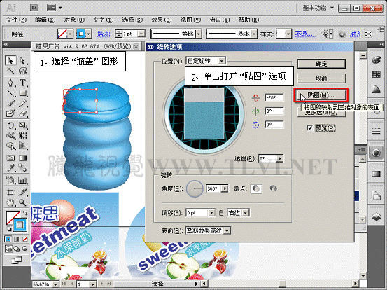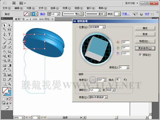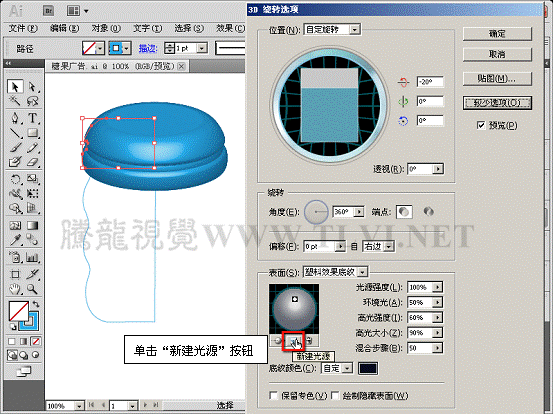 (12)在"外观"调板中打开瓶盖的"3D绕转"效果。