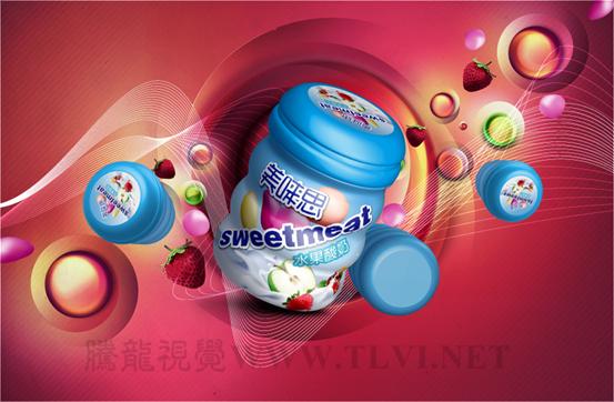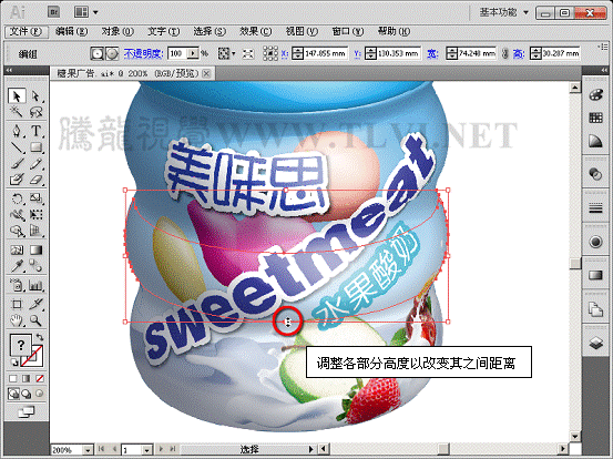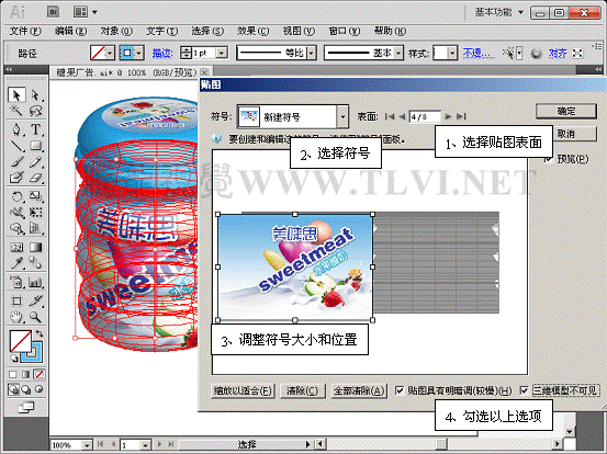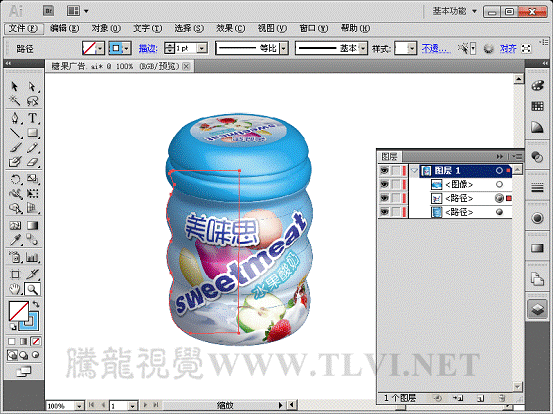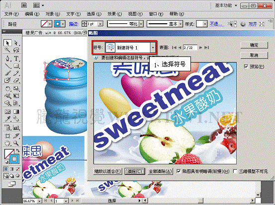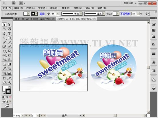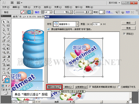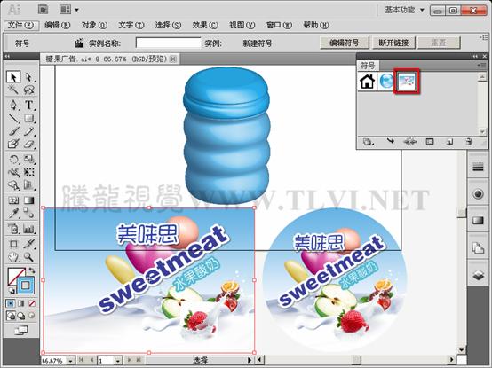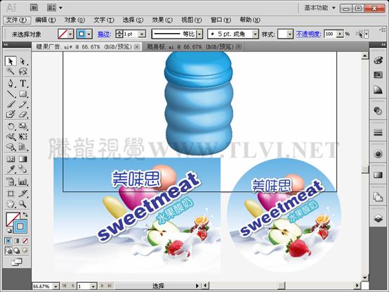 (10)接着打开本实例配套素材"瓶身标.ai"文件,将该文档图形移动至"糖果广告"文档中。
