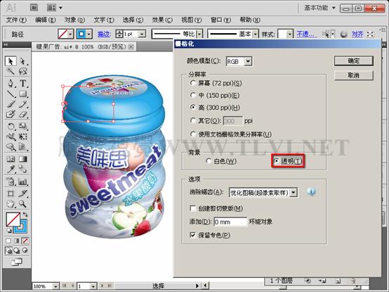(17)选择瓶盖图形,执行"对象"→"删格化"命令。