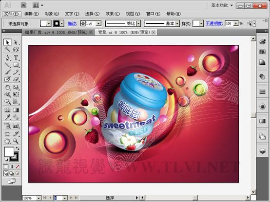 (1)打开本实例配套素材"糖果广告.ai"文件。