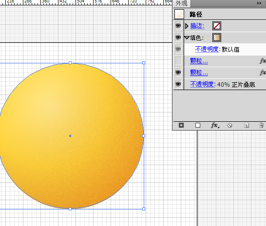 5、将第一个圆可见,第二个圆的透明度设为40%,混合模式为正片叠底。如下图,太阳的雏形已经完成了。