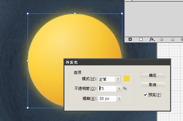 16、找到之前的绘制的两个圆置于最顶层,选中基底圆,应用菜单-效果-外发光,参数如下,做出光晕效果