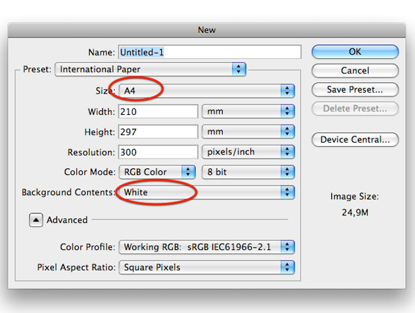 首先,在Photoshop中新建一个大小A4的文件,双击背景层解锁