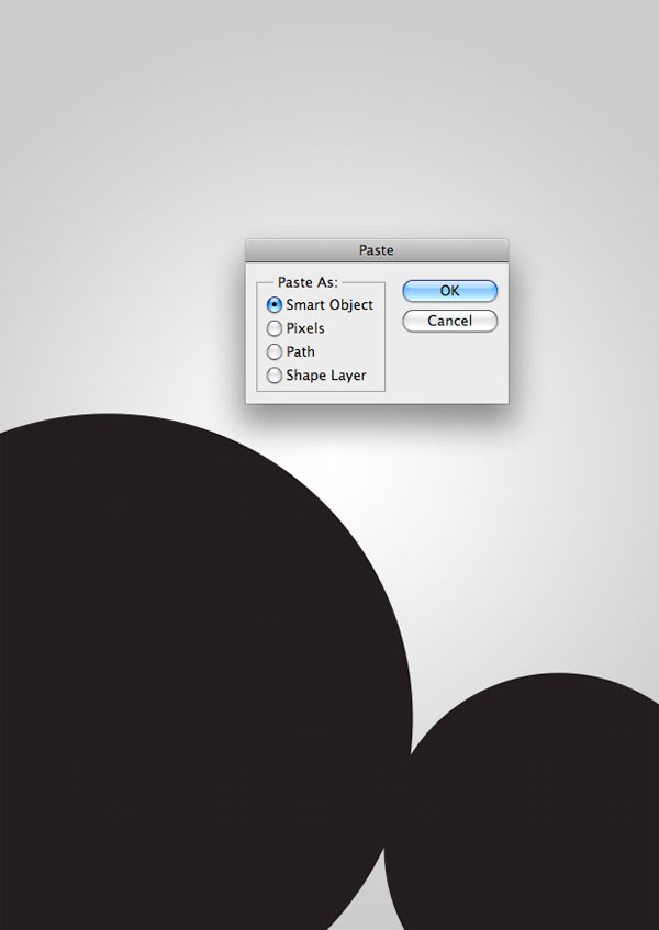 复制这两个圆,粘贴在photoshop中,在出现的对话框中选择智能对象,将智能对象作为黏贴选项是为了在以后缩放该图形时不会损坏图像质量。