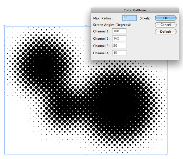 此刻,开始制作彩色半调效果。效果像素化彩色半调。最大半径值是控制你想得到的彩色半调点的大小,你可以多次尝试直到得到自己满意的效果为止