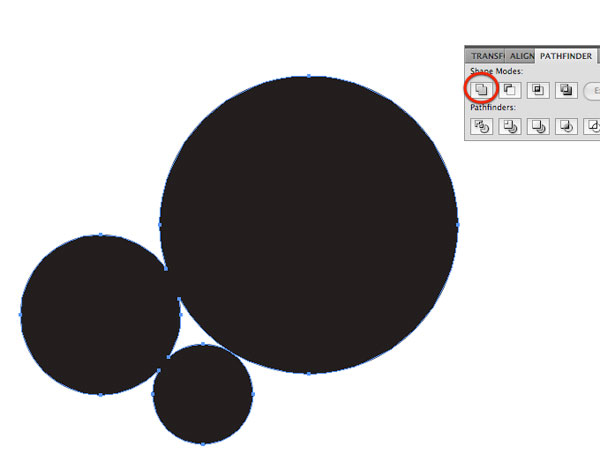让我们回到illustrator中,绘制接下来要用到的"泡泡"。绘制一些相切的圆形,并用路径查找器将它们合并