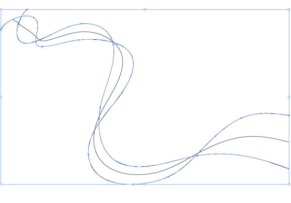 先用钢笔工具绘制两条曲线,确保你所绘制的曲线有两个或者是更多的交点,这样可以让你的带状元素显得更错综复杂。