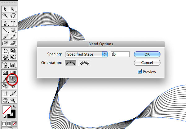 让我们再次切换到illustrator中,绘制矢量曲线,在这步中,我们将会用到illustrator的强大工具"混合命令",(Ctrl+B)。