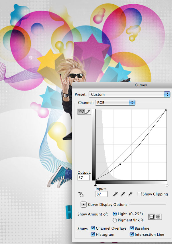按Ctrl+M,调处曲线对话框,单击一下一建立一个参照点,然后向右下区域拽这个点,你将会注意到越是往右下方拽参照点,白色噪点就变得越是柔和