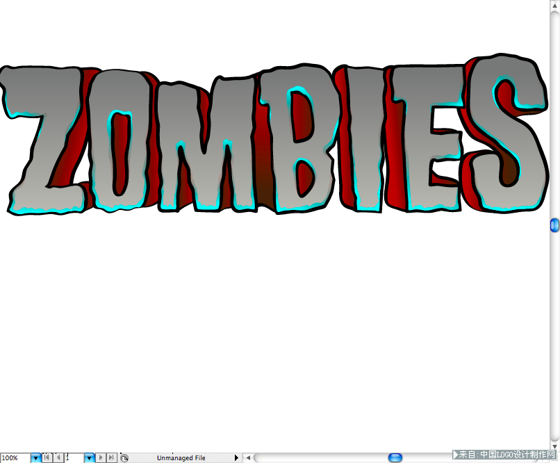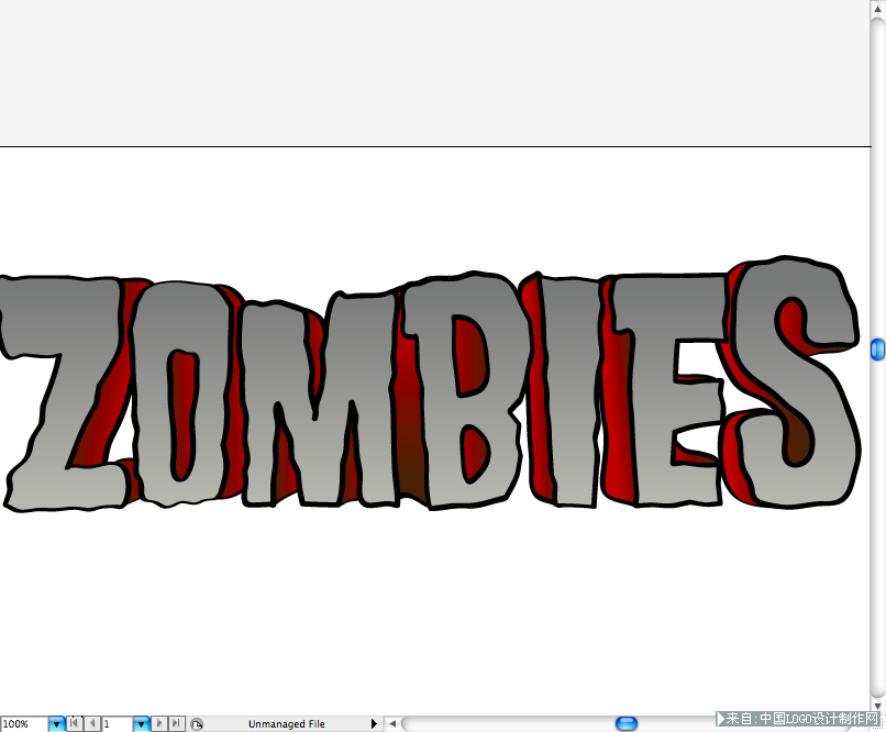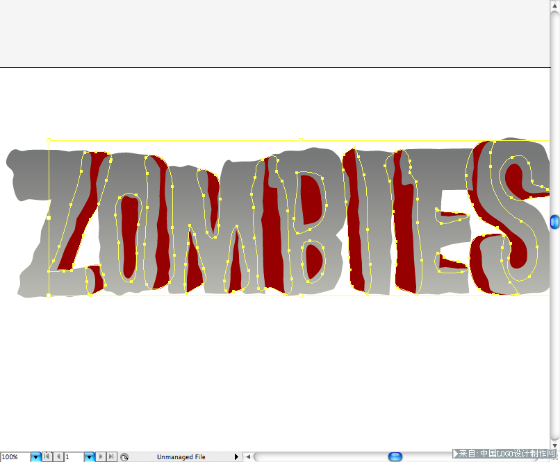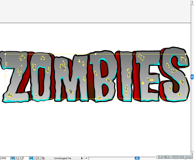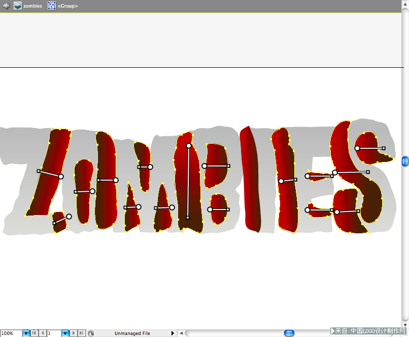 第四步 我做着同样的过程对僵尸字体,首次把它们全部丢aoutlines,然后ungrouped和调整一下。