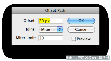 选择复制类型和去对象>路径>抵消路径和把嵌板像惨叫。