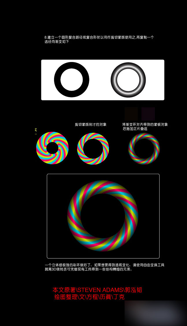 这篇教程算是比较简单的一个AI教程吧!这个教程是使用AI的扇贝工具来制作完成的,在AI理一些包含过度渐变色彩的元素诸如花卉,炫光条纹等的制作令很多设计从业者头疼,一味的使用实色填充很难给设计带来美感,或者干脆使用网上的素材拼构,这样做一不道德,其次对设计者的能力提高没有丝毫的帮助。这源于对涉及软件的工具了解甚少,以及色彩常识的欠缺。笔者初学AI时会请教一些人某些工具的用法,回答通常是“这很少用到,一般不会用到。”果真如此么?让我们通过几则国外设计师的实例样本来看看怎样制作出精致的包含过渡色的元素。