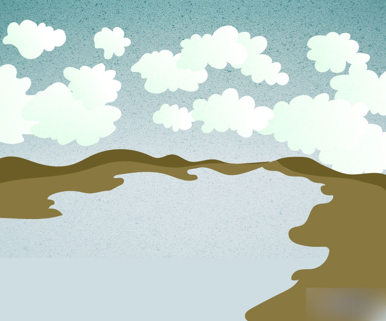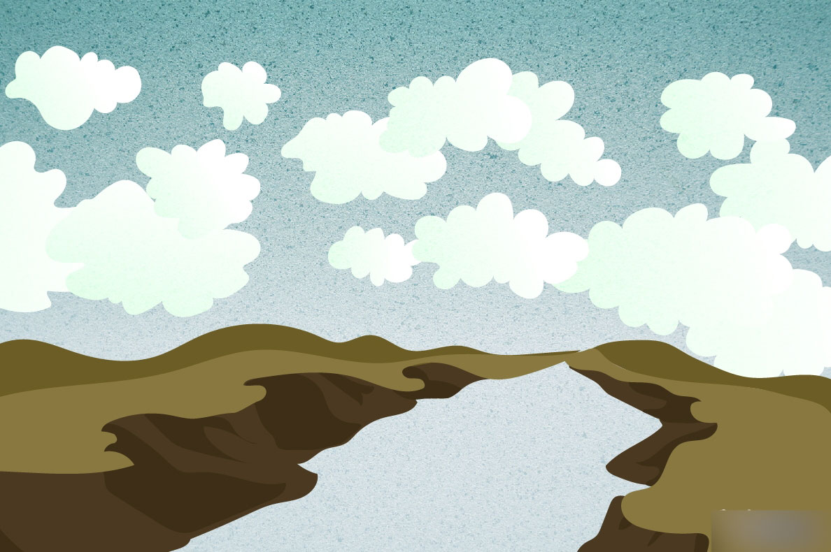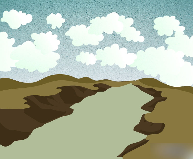 这时在群山和峡谷这组图形的最后一步画上地面的颜色。置于最下方。