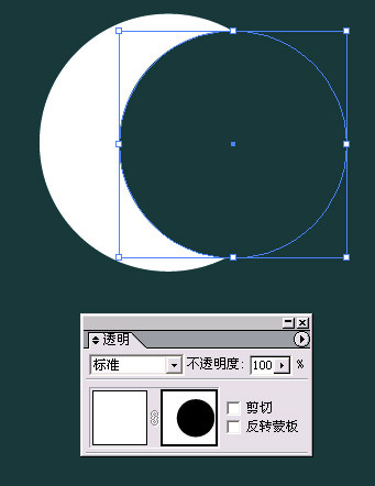 2-"透明面板"和PS相似 也有混和方式和透明度的调节现在的白方块是当前选中的物体(实际里面是上述白色的圆形)。