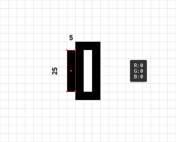 选择矩形工具(M), 将描边设置为"无",选择填充并设置其颜色为黑色(R = 0 G = 0,B = 0)。画一个大小为15×35像素的矩形。