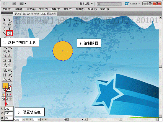 (8)在"背景"图层上方新建图层,使用"椭圆"工具,绘制椭圆图形。