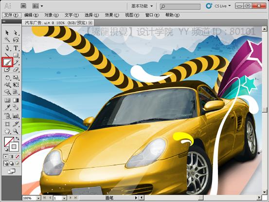 (13)将创建的黄色和黑色图形删除,使用"画笔"工具,绘制图形。