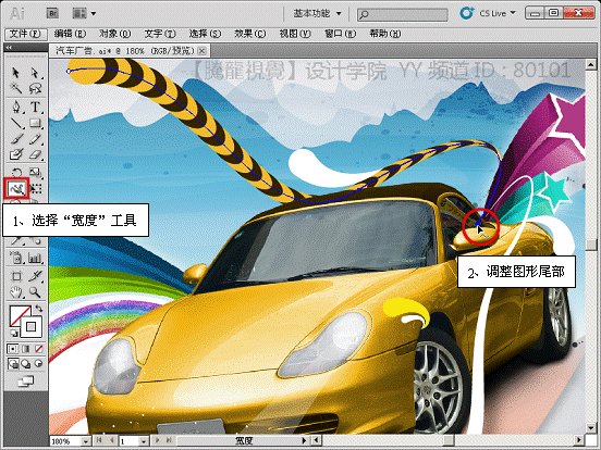 (3)使用"宽度"工具,调整路径描边的宽度。