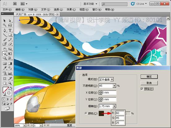 (15)执行"效果"→"风格化"→"投影"命令,添加投影效果。