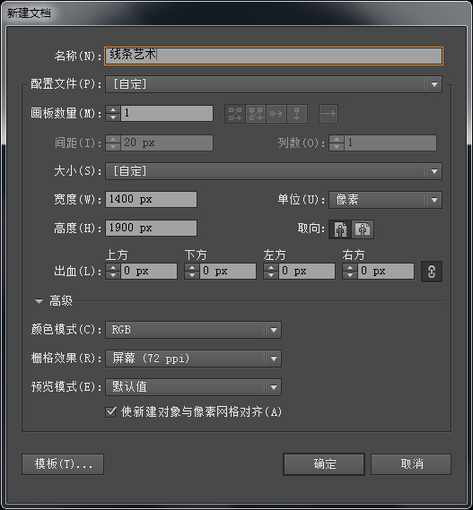 打开AI软件,新建一个文档,文档大小设置为1400*1900px。
