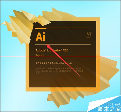 1、当我们在ai 的软件启动界面中可以看到。这里是它的默认的一些文字。如果我们想要把它上面的Ai更改为自己的文字。同时也把下面的Adobe Illustrator sc6上面的字也去掉。