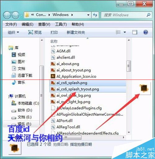 3、然后在打开的面板中,在它的列表中找到ai_cs6_splash.png和ai_cs6_splash_tryout.png这两个启动界面的图片。