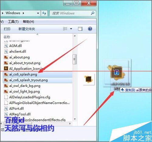4、为了以后想要恢复这两个启动的图片。我们要先在桌面上新建一个文件夹,可以把它命名为ai原来的启动图片。然后按着键盘上的ctrl键选中这两个图片。把它直接拉到我们在桌面上新建的文件夹中。这样做的目的是为了如果以后想要把它们原来的图片进行还原的话,也可以在这个文件夹中快速的替换。