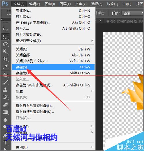 11、在菜单中点击文件,然后在下拉列表中选择存储。进行存储的时候,需要注意的是它默认的是psd的图片格式,我们需要把它更改为和原来图片一样的png格式。