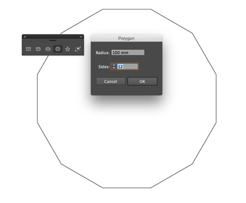 首先新建一个AI文件,选择多边形工具然后单击画板,在出现的多边形对话框中填入边数,边数越多,最后的图案就更精细。 输入边数12,并将半径设为大约100mm。