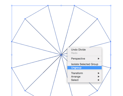 选择所有的对象,然后依次点击路径查找器-分割,将多边形分割成12个三角形。