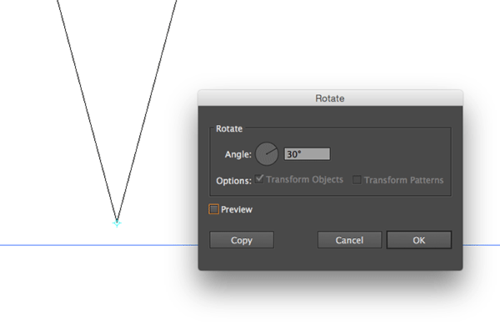 点击 视图-轮廓, 选择旋转工具,然后按住ALT键并同时点击三角形的顶点,在旋转窗口中输入30°(360°÷ (边数)12= 30°),点击复制。