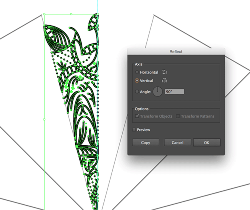 选择所有的路径然后复制并粘贴。编组复制后的图形然后点击 对象-变换-对称 并选择竖直。