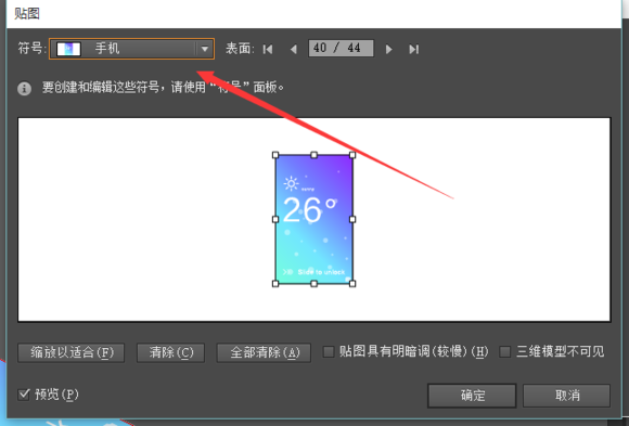 然后就是简单的装饰了一下,放上一些图案将做好的界面转成符号,3D贴图使用