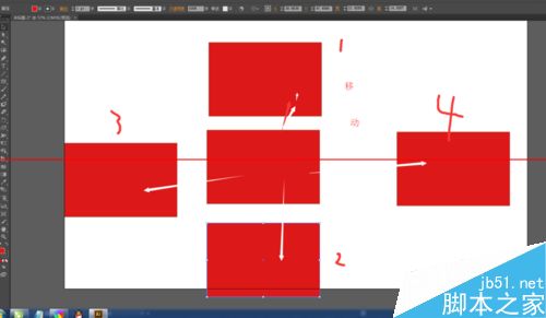 2、多个图形的使用:点击工具箱中的矩形工具,或者快捷键【v】,选中两个矩形,为了确保选中了两个矩形没有,我们可以看到两个矩形中有小的图标像正方形的那个,就表示选中了两个矩形。我们可以进行左右,上下移动。(如下图)