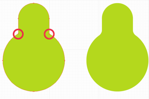 顶部直线变半圆,下部矩形框底部的两个锚点各向中心点移动八像素。