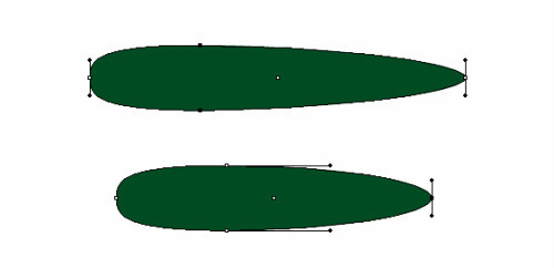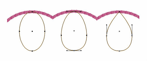 然后使用直接选取工具移动左右锚点的手柄。选择顶部的锚点,将选择的锚点改为直角锚点。这样就会创建出一个水滴状。