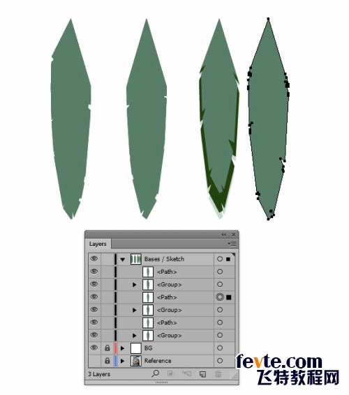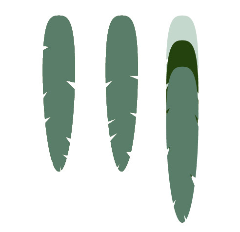将每一组的羽毛组合(Ctrl+G),复制。打开路径联合,为每个组创建一个整体形状。