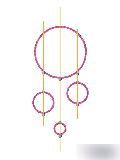 然后使用直线工具从高到低用先连接起圆环,同样对直线应用艺术笔刷。