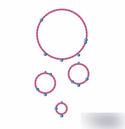 为每一个圆环复制一份螺旋水滴并调整大小。