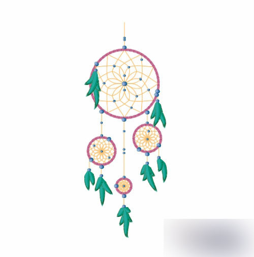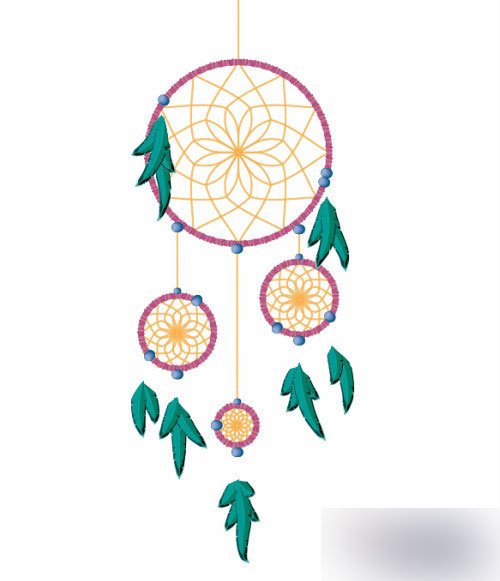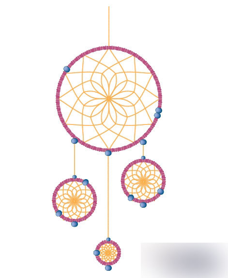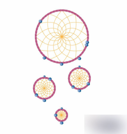 所以现在就可以创建捕梦网了。使用圆形工具制作一系列的圆形。一个大的圆,在它下面创建一些小的圆。