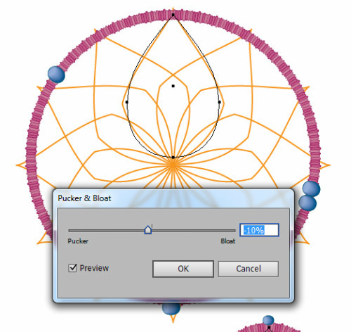 现在需要创建捕梦网上面的珠子。先画出一个圆形。使用直接选取工具选择底部和顶部的锚点,向中心点移动锚点。如图所示一个压扁的圆。