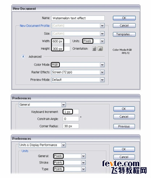新建文件,大小:600*300px 单位:像素 颜色模式:RGB