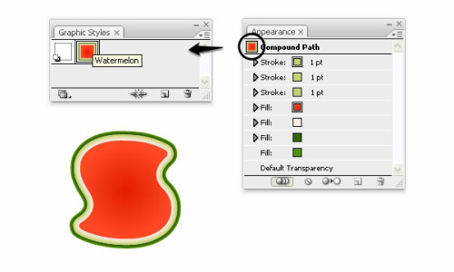打开图形样式面板,外观面板在旁边。从外观面板中,将刚创建的西瓜样式拖到图形样式面包中。保存
