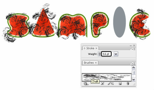 选择上一步创建的所有路径使用艺术笔刷描边 "粉笔"。你可以在笔刷库>艺术笔刷>艺术效果_粉笔。设置笔刷大小0.6pt.