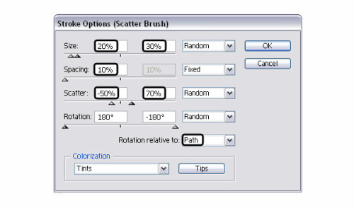 选择第一个字母S,使用椭圆工具画一椭圆,使用刚刚创建的种子笔刷描边,双击笔刷 描边打开笔刷选项窗口,你可以尝试不同值,但需要沿着路径转动。