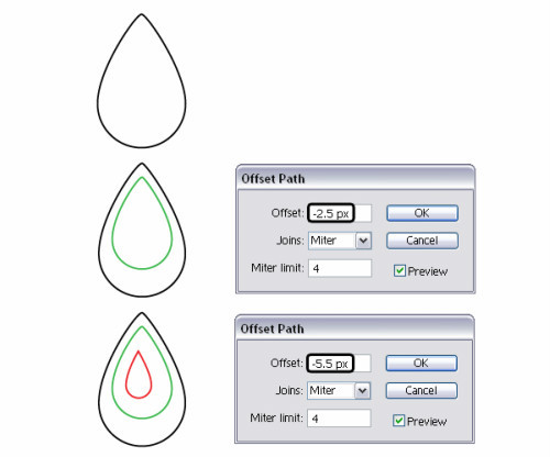 选择"seed-shape"层,对象>路径>偏移路径 输入-2.5px的偏移量,得到一个更小的种子状,网上移动一点点。命名为"seed-middle"然后选择"seed-shape"输入-5.5px的偏移量。命名为"seed-small"。