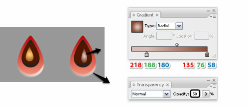 复制seed1,选择seed-small路径。然后将它移到左边,改变中间路径的渐变。选择组,在扩展笔刷描边之后降低这个描边的透明度50%。,因为不希望素有种子看起来都一个亮度。这个组命名为seed2