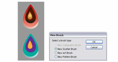 遗憾的是我们不能将带有渐变填充的图形存成笔刷。但还是有办法的。复制seed1,将此组的三个路径都换成填充色如图。现在选择新的种子,拖动到笔刷面板存储为离散种子笔刷。