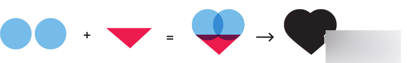 心形图标可以由两个圆圈和一个三角形组成。